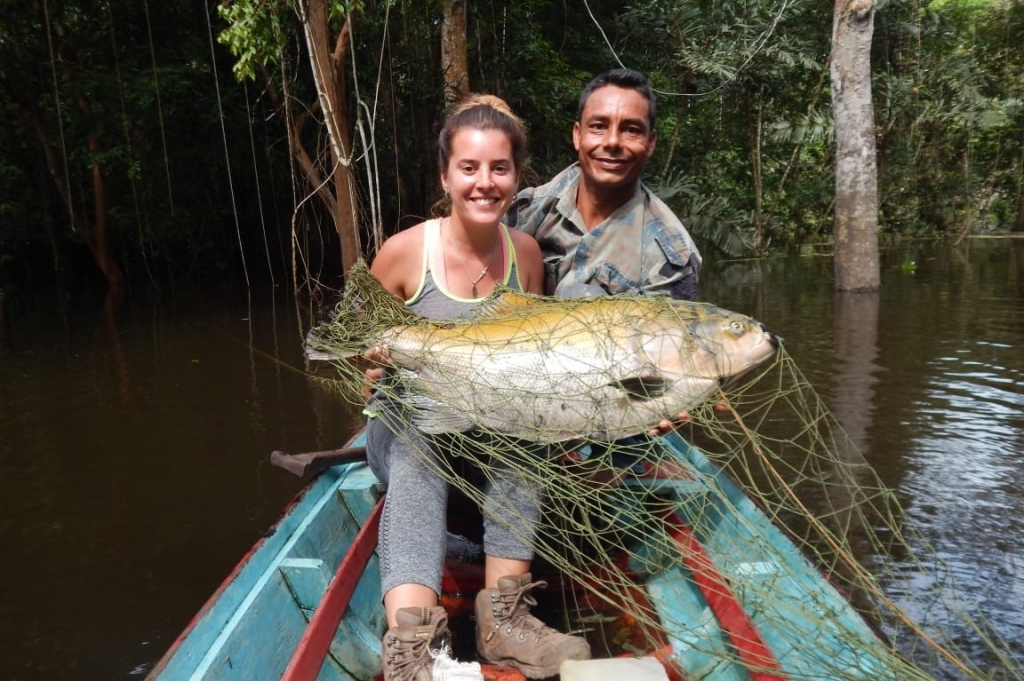 Dinner. At night, we will go out by canoe to observe caimans and other animals. Overnight.